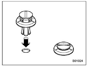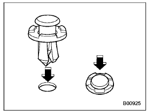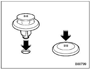 Insert the clip without the center portion first and then push the center portion of the clip into the hole. |