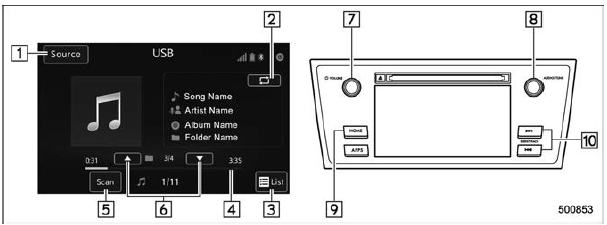 Press to turn the audio system on/off. |