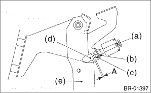 1. Loosen the lock nut, and adjust the stop light switch position until the clearance (A) between the threaded end of the stop light switch and stopper becomes 1.1 mm (0.04 in). Then, tighten the lock nut. Tightening torque: 8 N·m (0.8 kgf-m, 5.9 ft-lb) 2. Tighten the lock nut.