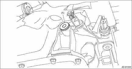 CAUTION: • CVTF level changes along with CVTF temperature. When inspecting CVTF level, observe the specified CVTF temperature. • Always use specified CVTF. Using other fluid will cause malfunction. 1. Start the engine to raise CVTF temperature to 35 — 45°C (95 — 113°F) on Subaru Select Monitor. 2. Operate the select lever in P > R > N > D and D > N > R > P to circulate CVTF with the engine idling. 3. With the engine idling, lift up the vehicle and remove the filler plug. CAUTION: Pay special attention to the following operations as the engine is at idle. NOTE: CVTF is at the specified level when it is up to the filler plug hole lower section.
