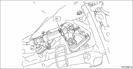 3. Lift up the vehicle. 4. Remove the center exhaust pipe. Center Exhaust Pipe > REMOVAL 5. Loosen the two bolts holding the inhibitor switch. 6. Insert the ST vertically into the holes of the shifter arm and switch body.