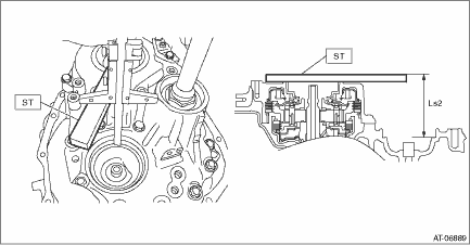 7. Using the new drive pinion retainer or new reverse brake housing, measure the depth “Ls2” from the ST upper face to the secondary pulley bearing catch surface at several points and calculate the average.
