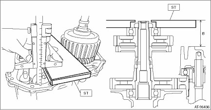 2. Measure the height “B” from the ST to the mating surface of the transmission case.