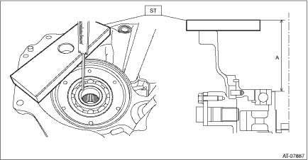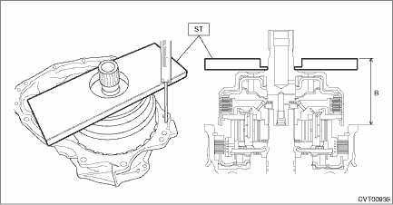 2. Install the forward clutch assembly to intermediate case. 3. Setting the ST, measure height “B” from the ST upper side to the intermediate case mating surface.