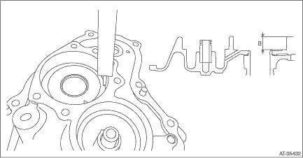 2. Measure depth “B” from the converter case cover upper face to the bearing catch surface.