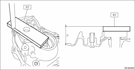 3. Using the ST, measure height “C” from the ST upper face to the converter case cover mating surface.