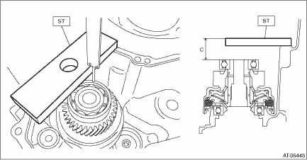 4. Install the ball bearing to the reduction driven gear. NOTE: Use a new ball bearing. 5. Measure depth “C” from the ST upper face to the bearing end face using the ST.