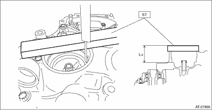 4. Using the current drive pinion retainer or current converter case, measure depth “Ls1” from the ST upper face to the secondary pulley bearing catch surface at several points and calculate the average.