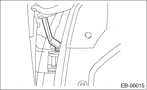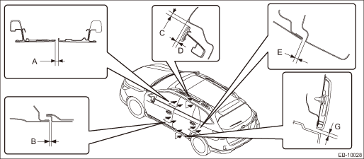 2. Adjust the surface level gap between the panel assembly - rear door and the body. CAUTION: Do not use an impact wrench. Welding area on the striker nut plate is easily broken. (1) Loosen the screws (A). (2) Tap the striker - rear door (B) using a plastic hammer to adjust the surface level gap between the rear end of the panel assembly - rear door and the rear quarter.