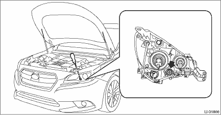 6. Adjust the headlight beam. (1) Place the vehicle with the front end facing to the measurement panel, open the front hood, and then illuminate the low beam.