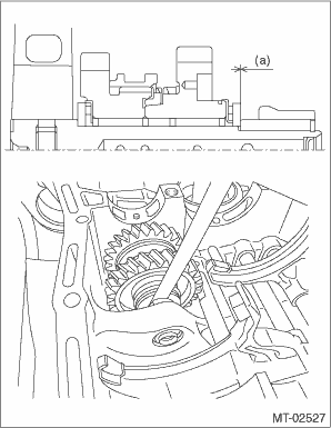 1. Select the appropriate reverse idler gear bushing from the table below, and adjust until the clearance between the reverse idler gear and reverse idler gear washer is within specification. Clearance (a): 0.1 — 0.3 mm (0.004 — 0.012 in)