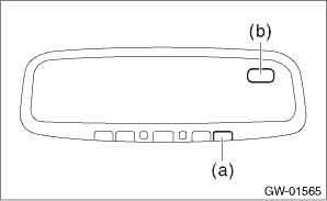 CAUTION: • When the rearview mirror with compass and home link is removed or replaced, perform calibration and zone setting by following the procedures below. • The zone setting of the vehicle is set to zone “8” at factory setting. 1. CALIBRATION 1. Before performing calibration, check the following items. • There is a sufficient distance from a big metal object or a building. • Vehicle is parked on a level surface. • The switch of unnecessary accessories (A/C system, audio system and lighting system) is turned to “OFF”. • All doors are closed. 2. Start the engine. 3. Hold down the multi-function button (a) for six to nine seconds. Once calibration mode starts, “C” is displayed on the screen (b).