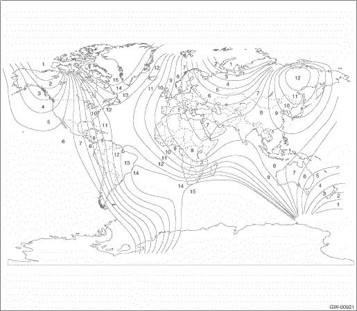 4. Drive the vehicle in a circle until the display of “C” on the screen goes off. (Approx. two or three times) 5. Display the compass to check the operation. CAUTION: The mirror may not be able to perform the reading correctly. Therefore, when the compass operates only to the specific direction, repeat steps 3) to 5). 2. ZONE SETTING 1. Refer to the compass zone map to check the zone number of area you use the vehicle. Compass zone map