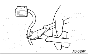 5. Cut off the harness on the body side of the removed connector approx. 70 mm (2.76 in) from the edge of the connector. Preparation tool: Nippers