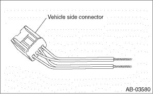 4. SIDE AIRBAG MODULE 1. Turn the ignition switch to OFF. 2. Disconnect the ground terminal from the battery sensor, and wait for at least 60 seconds before starting work. NOTE 3. Disconnect the side airbag module connector under the front seat cushion. Airbag Connector > PROCEDURE 4. Adjust both the front seat and front seat backrest to the center positions. 5. Short the terminal to the alligator clip furnished as airbag deployment tool. CAUTION: The airbag deployment tool should be kept shorted on the terminals until just before activation of airbag module. Preparation tool: ST: AIRBAG DEPLOYMENT TOOL (98299PA030) 6. Connect airbag deployment tool (A) and test harness adapter AR (B). Preparation tool: ST: TEST HARNESS ADAPTER AR (98299CA000)