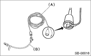 5. Short the terminal to the alligator clip furnished as airbag deployment tool. CAUTION: The airbag deployment tool should be kept shorted on the terminals until just before activation of airbag module. Preparation tool: ST: AIRBAG DEPLOYMENT TOOL (98299PA030) 6. Connect the airbag deployment tool (A) and test harness adapter D (B). Preparation tool: ST: TEST HARNESS ADAPTER D (98299SA010)