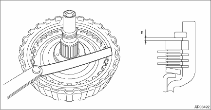 13. Measure and record the clearance “B” between the retaining plate and snap ring.