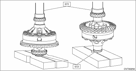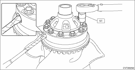 6. Install the differential case (LH) to the differential case (RH). 7. Using the ST, install the hypoid driven gear by tightening the installation bolt.