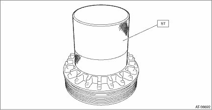 2. SIDE RETAINER NOTE: After adjusting the backlash and tooth contact, replace the oil seal and O-ring of side retainer with new parts. 1. Using the ST, install the oil seal. NOTE: • Use a new oil seal. • Apply differential gear oil to the oil seal lip and press-fitting surface. • Oil seal has an identification mark (R, L). When installing oil seals, do not confuse the left and right.