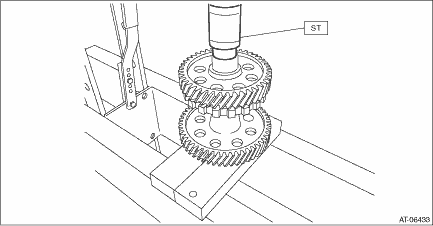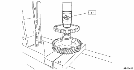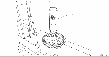 1. Install the snap ring to reduction driven gear. NOTE: Use a new reduction driven gear COMPL. 2. Using the ST, attach the collar. NOTE: Attach the collar in the correct direction.