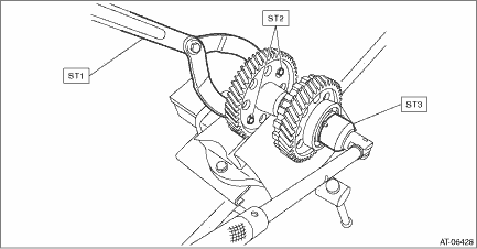 6. Using the ST, counter the rotation of the reduction drive gear assembly, and install the lock nut. NOTE: Use a new lock nut.