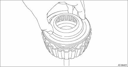 3. Install the transfer clutch piston seal. NOTE: Apply CVTF to the lip section of transfer clutch piston seal.