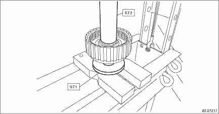 9. Recheck the clearance. Transfer Clutch > INSPECTION 10. Using the ST, install the ball bearing. NOTE: Use a new ball bearing.