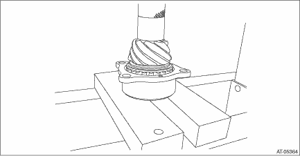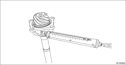 7. Apply differential gear oil to roller of bearing and rotate the bearing several times. 8. Measure the starting torque of the bearing. Make sure the starting torque is within the specified range. If the torque is not within specified range, replace the roller bearing. Starting torque: 16.3 — 42.7 N (1.7 — 4.4 kgf, 4.4 — 9.6 lbf)