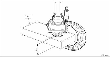 9. Crimp the lock nut in 2 locations. 10. Measure the dimension “B” of the drive pinion shaft.