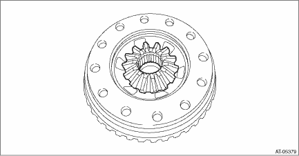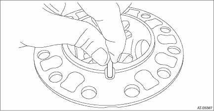 7. While checking the tightening angle with the angle gauge, further tighten the hypoid driven gear mounting bolts. Tightening angle: 45°±2° 8. Measurement of backlash (selection of washer) (1) Install the SUBARU genuine axle shaft to differential case.