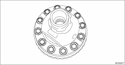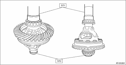 6. Using the ST, install the hypoid driven gear by tightening the installation bolt.
