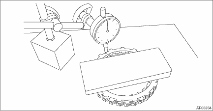 1. Place the dish plate, driven plate, drive plate and retaining plate neatly in this order on surface table. NOTE: Make sure of the direction of dish plate. 2. Set the dial gauge to retaining plate, and read its scale. NOTE: The value, which is read in the gauge at this time, is zero point. 3. Scale and record the weight “Z” of a flat board which will be put on retaining plate. NOTE: • Use a stiff board which does not bend against load as a flat board to be put on retaining plate. • Use a flat board weighing less than 130 N (13.3 kgf, 29.2 lb). 4. Put the flat board on retaining plate.