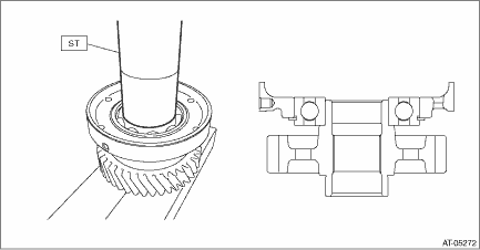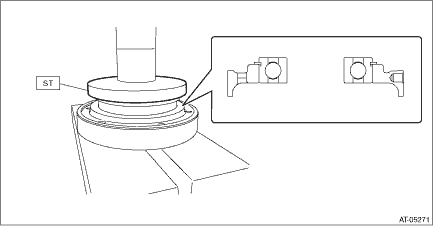 NOTE: • Use a new ball bearing. • Make sure to install the ball bearing in the right direction. • Apply CVTF to the press-fitting area.
