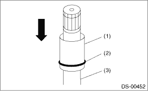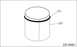 1. Roll up a thick piece of paper to a size where the shaft can pass through, and affix with tape to form a cylinder. 2. Attach a new O-ring on this cylinder. CAUTION: • Always use a new O-ring. • Be careful that the O-ring does not become scratched and that there are no foreign objects attached to it. • Make sure to install the O-ring so that it does not twist as much as possible. • Do not stretch the O-ring to 30 mm (1.18 in) inner diameter or more.