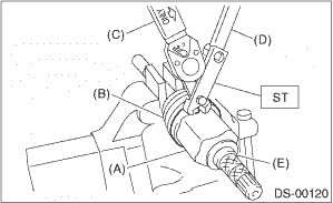Tightening torque: Large boot band: 178 N·m (18.1 kgf-m, 131.3 ft-lb) Small boot band: 145 N·m (14.8 kgf-m, 106.9 ft-lb) Preparation tool: ST: BOOT BAND PLIERS (28099AC000)