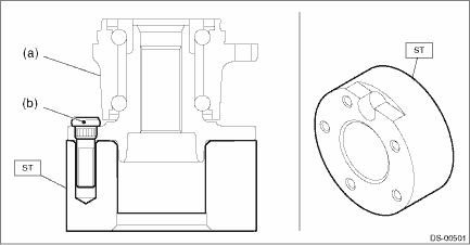 1. Install the hub unit COMPL - rear axle to the ST securely. Preparation tool: ST: HUB STAND (28099PA080)