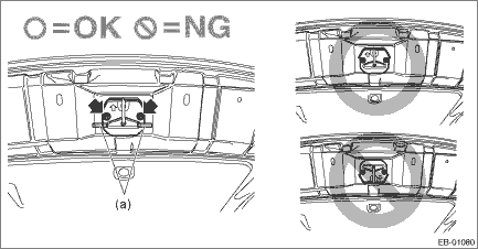 4. Align the alignment marks (a), and install the striker - front hood to the hood COMPL - front. CAUTION: When installing the striker - front hood, make sure that the front and rear sides are positioned in a correct direction. Tightening torque: 33 N·m (3.4 kgf-m, 24.3 ft-lb)