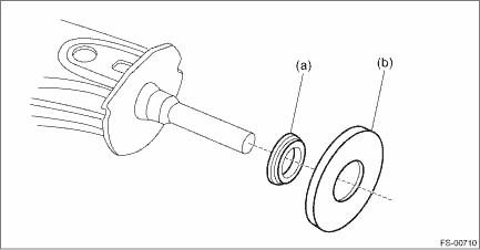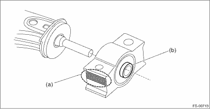 (2) Install the rear bushing assembly so that the rib (a) faces the upper side of the vehicle and the protrusion (b) faces the rear side of the vehicle.