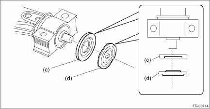 (3) Install the plate - arm front (d) and the stopper - rubber front (c).