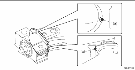 (4) Using new self-locking nuts, install the rear bushing assembly to the bushing rear - front arm by matching the alignment marks that have been marked when removing. Tightening torque: 140 N·m (14.3 kgf-m, 103.3 ft-lb) • Front arm assembly replacement: align the alignment mark (a) of the bushing rear - front arm with the cutout portion of the front arm assembly.