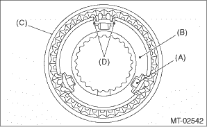 3. Install the 1st-2nd coupling sleeve. NOTE: • Install the 1st-2nd coupling sleeve in proper direction. • Align the alignment marks of 1st-2nd coupling sleeve and the 1st-2nd synchronizer hub.