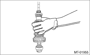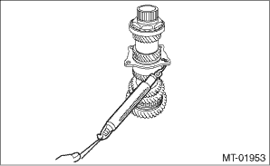 14. Using a spring scale, check that the initial load of the ball bearings is 0.1 to 1.5 N (0.01 to 0.15 kgf, 0.02 to 0.34 lbf).