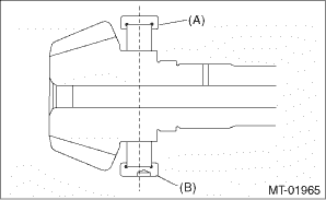 15. Crimp the lock nut at two locations so that the dimension (B) becomes 39.1 mm (1.54 in) or less. CAUTION: When crimping the lock nut, be careful not to crack it.