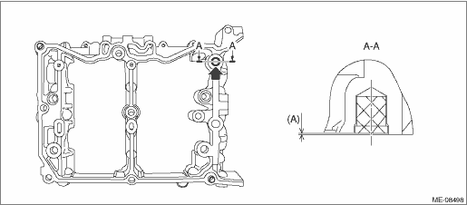 2. Set the intake camshaft RH and the exhaust camshaft RH to the cam carrier RH. NOTE: Apply engine oil to the journals of cam carrier RH before setting the intake camshaft RH and exhaust camshaft RH. 3. Install the front camshaft cap RH, intake center camshaft cap RH, intake rear camshaft cap RH, exhaust center camshaft cap RH and exhaust rear camshaft cap RH. (1) Apply liquid gasket to the mating surface of front camshaft cap RH, intake rear camshaft cap RH and exhaust rear camshaft cap RH as shown in the figure. CAUTION: • Do not apply liquid gasket excessively. Applying excessively may cause excess gasket to flow toward camshaft journal, resulting in engine seizure. • Do not apply liquid gasket excessively to the intake center camshaft cap RH and exhaust center camshaft cap RH. NOTE: • Before applying liquid gasket, degrease the old liquid gasket seal surface of the front camshaft cap RH, intake rear camshaft cap RH, exhaust rear camshaft cap RH, and cam carrier RH. • Install within 5 min. after applying liquid gasket. Liquid gasket: THREE BOND 1217G (Part No. K0877Y0100), THREE BOND 1217H or equivalent Liquid gasket applying diameter: Mating surfaces other than range A 2±0.5 mm (0.0787±0.0197 in) Mating surfaces of range A 3.5±0.5 mm (0.1378±0.0197 in)