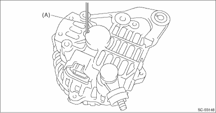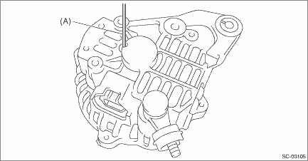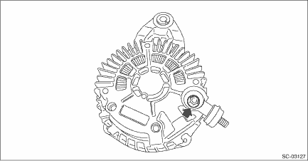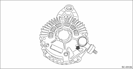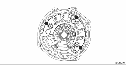 NOTE: After assembling, manually turn the pulley to check that the rotor rotates smoothly. 1. Use the following procedures to install the rectifier. (1) Remove old silicone grease on the mating surface of rear cover and rectifier and apply new silicone grease. CAUTION: Do not apply silicone grease to the attachment threads of rectifier. (2) Install the rectifier and secure it using bolts. Tightening torque: 3.9 N·m (0.4 kgf-m, 2.9 ft-lb)