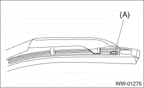 2. Make sure the rubber assembly - windshield wiper is securely fastened to the pull stopper (A).