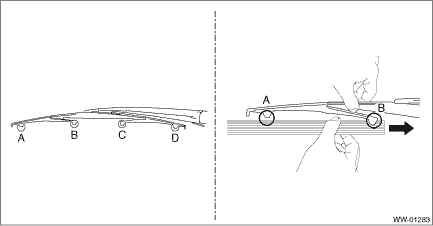 2. REAR 1. Insert the rubber assembly - rear wiper into claw (B).