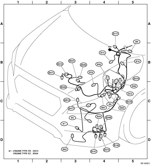 Bulkhead wiring harness (in engine compartment) rh locationClear memory mode operation