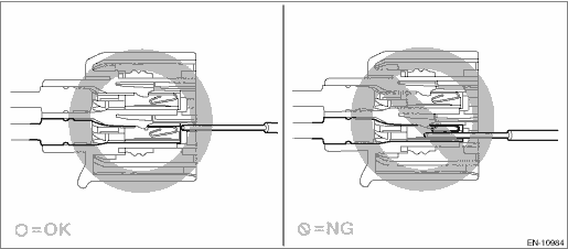 Never insert the tapered pin into the terminal because it deforms inside which may lead to a malfunction.
