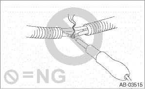 • When checking, use a test harness (1). Damage to connector terminal causes malfunction. Do not directly put the tester probe on airbag connector terminal.